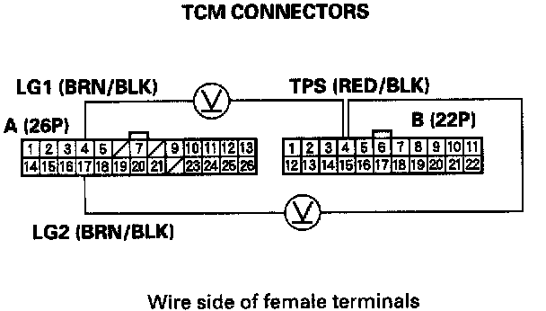 5. Disconnect TCM connectors A (26P) and B (22P).