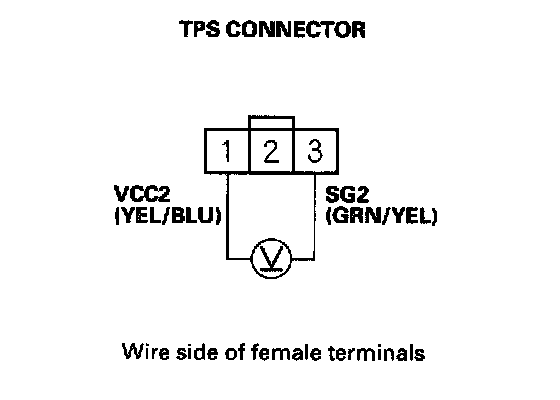 13. Measure the voltage between TPS connector terminals No. 1 and No. 3.