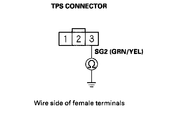 16. Check for continuity between TPS connector terminal No. 3 and body ground.