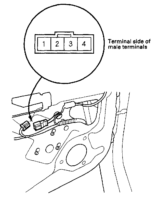 1. Connect the test leads of an analog ohmmeter to the No. 3 and No. 4 terminals.