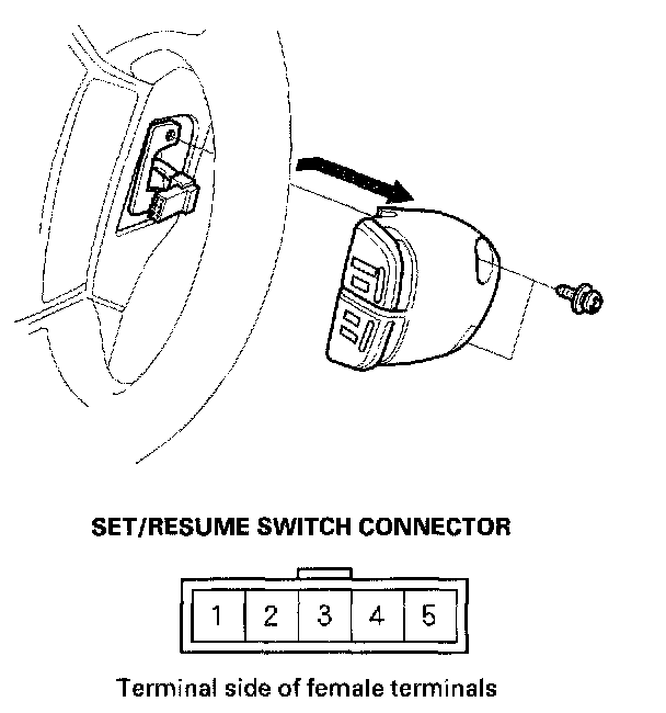 Set/Resume Switch Test1. Remove the two screws securing the set/resume switch, then remove the switch.