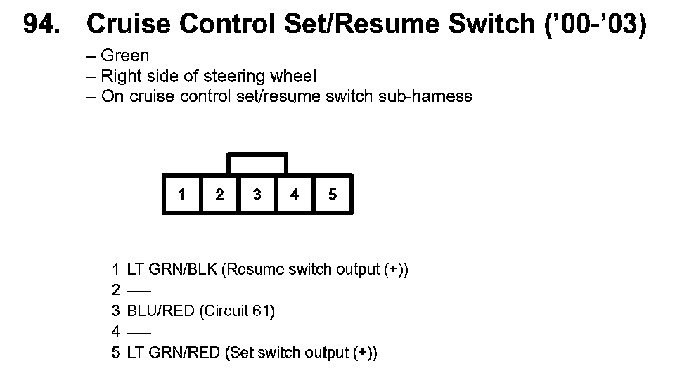 94. Cruise Control Set/Resume Switch: