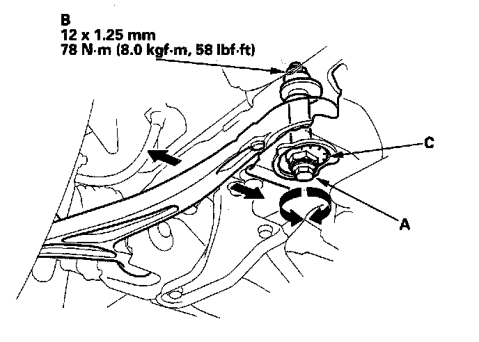 3. Turn the adjusting cam collar (C) until the caster is correct.