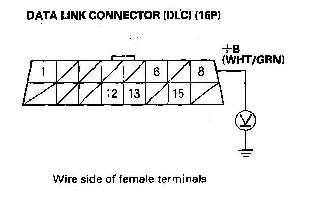 13. Measure voltage between DLC terminals No.13 and No.15.