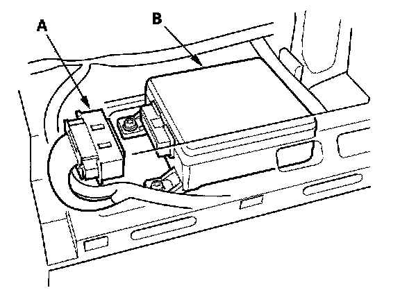 4. Disconnect the SRS unit 18P connector (A) from the SRS unit (B).