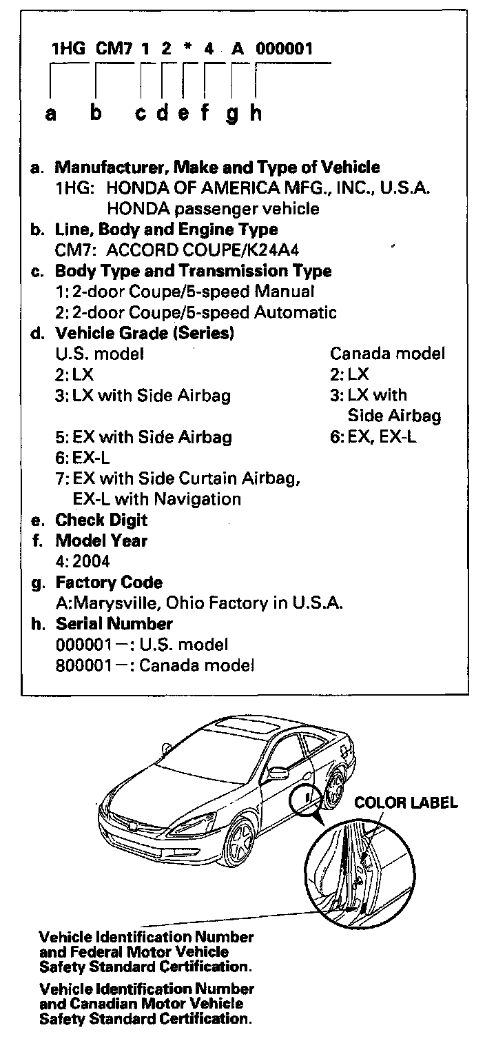 Vehicle Identification Number - 2 Door: