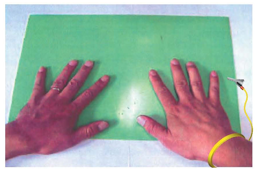3. Place the audio unit on the ESD/anti-static mat. Then attach the wrist strap around one of your wrists, and attach the alligator clip to the ESD mat.