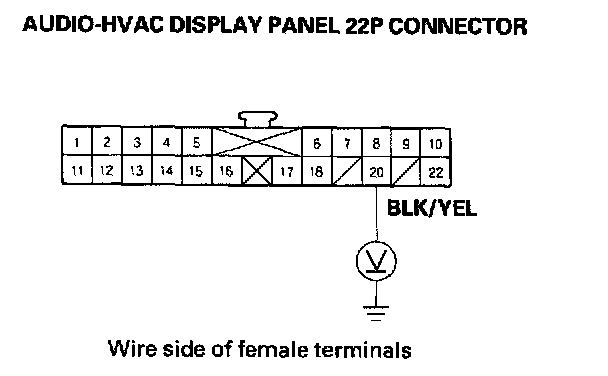 YES - Check for loose wires or poor connections at audio-HVAC display panel 22P connector. If the connections are good, substitute a known-good audio-HVAC display panel, and recheck. If the symptom/indication goes away, replace the original audio-HVAC display panel.