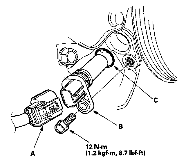 Install the sensor in the reverse order of removal with a new O-ring (C).