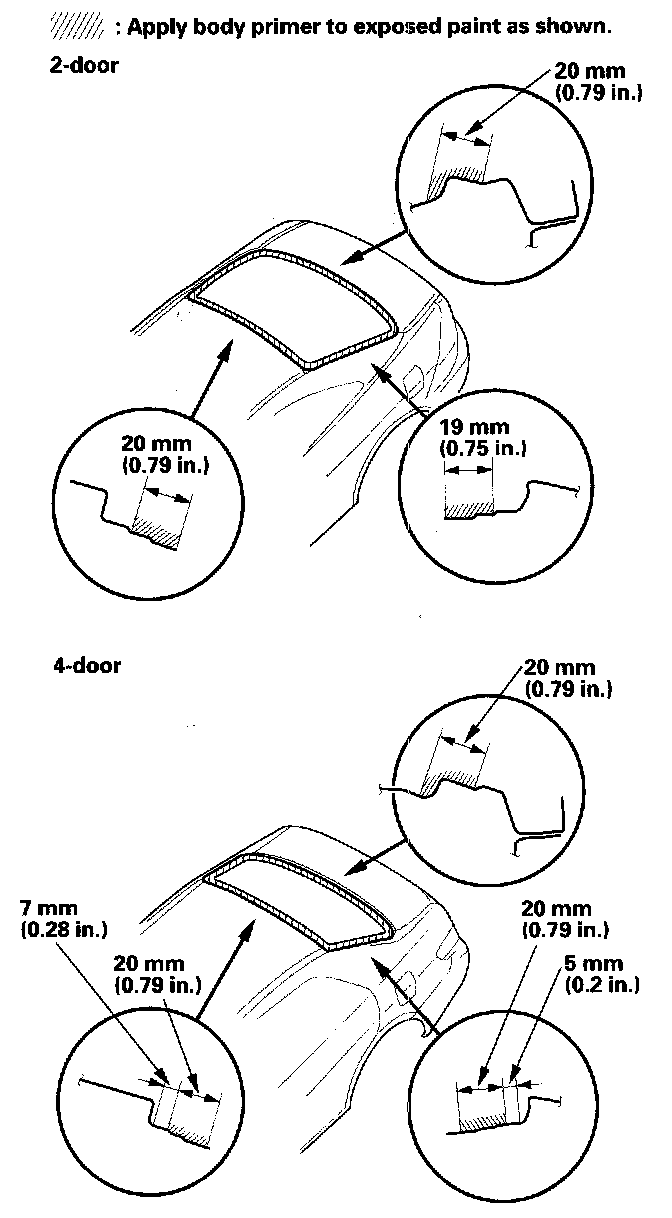 - Do not apply body primer to the rear window, and do not get body and glass primer sponges mixed up.