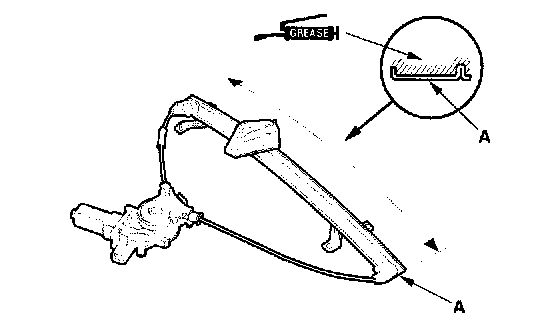 7. Apply multipurpose grease to all the sliding surfaces of the regulator (A) where shown.
