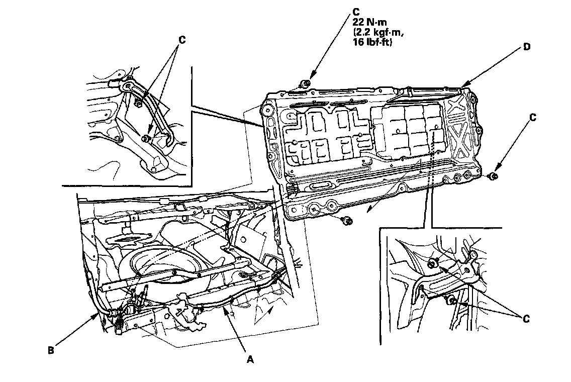 IMA components are located in this area. The IMA is a high-voltage system. You must be familiar with the IMA system before working on or around it. Make sure you have read the IMA information before performing repairs or service.