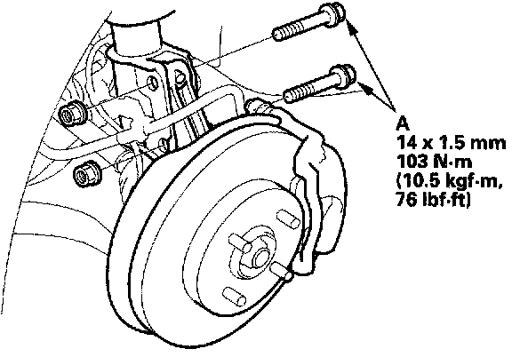 7. Replace the damper pinch bolts with the adjusting bolts (A), and adjust the camber angle.