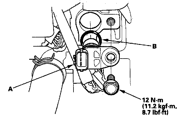 Install the sensor in the reverse order of removal with a new O-ring (B).