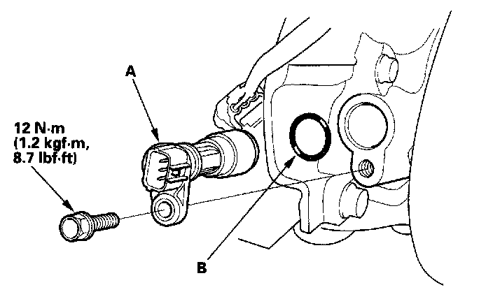 Install the sensor in the reverse order of removal with a new O-ring (B).
