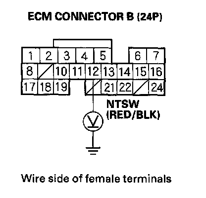 NO - Repair open in the wire between the ECM (B12) and the neutral position switch.