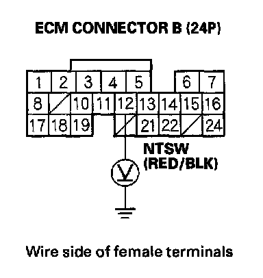 5. Measure voltage between ECM connector terminal B12 and body ground.