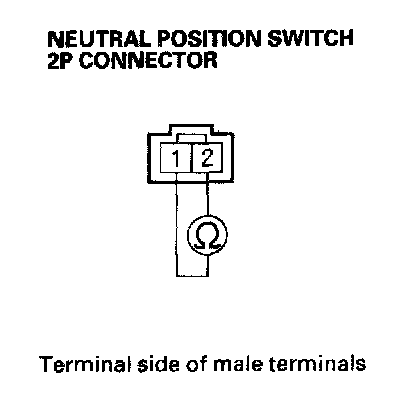 18. Check for continuity between neutral position switch 2P connector terminals No. 1 and No. 2 with the transmission in 1st gear.