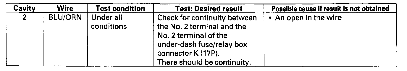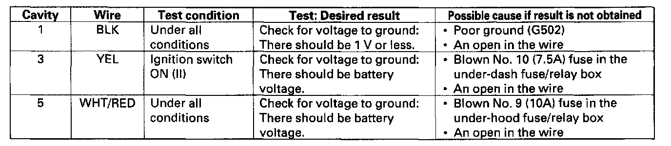 6. Reconnect the 5P connector and make these input tests at the connector.