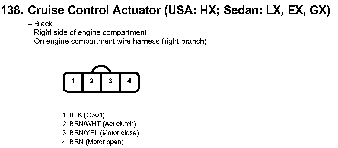 138. Cruise Control Actuator (USA: HX; Sedan: LX, EX,GX):