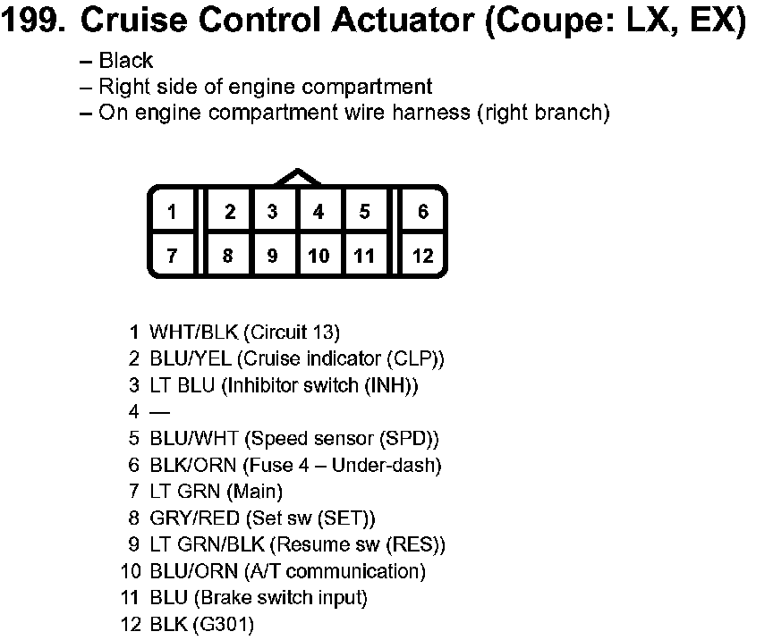 199. Cruise Control Actuator (Coupe: LX, EX):