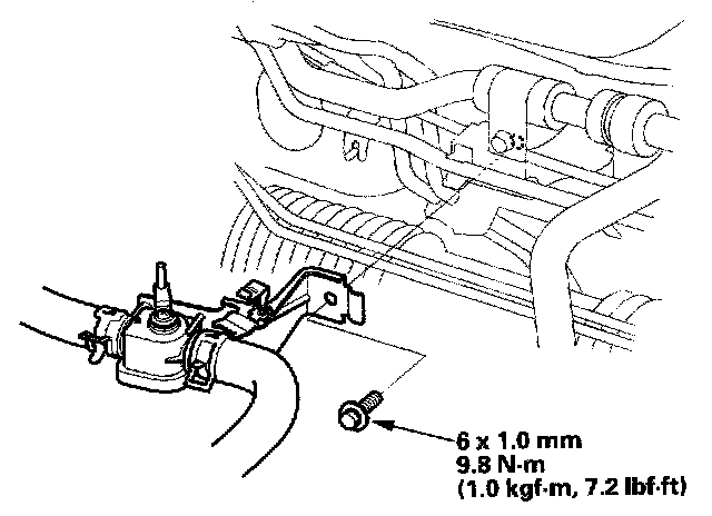 8. Remove the mounting nut from the heater unit. Take care not to damage or bend the fuel lines and the brake lines, etc.