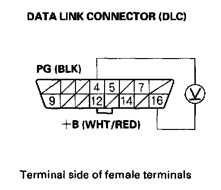 3. Measure voltage between DLC terminals No. 5 and No.16.