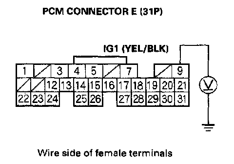 25. Check for continuity between PCM connector terminal E9 and body ground
