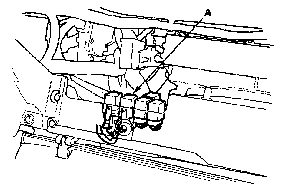 26. Remove the glove box, then remove PGM-FI main relay 2 (A).