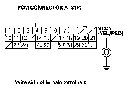 21. Check for continuity between PGM-FI main relay 1 4P connector terminal No.1 and body ground.
