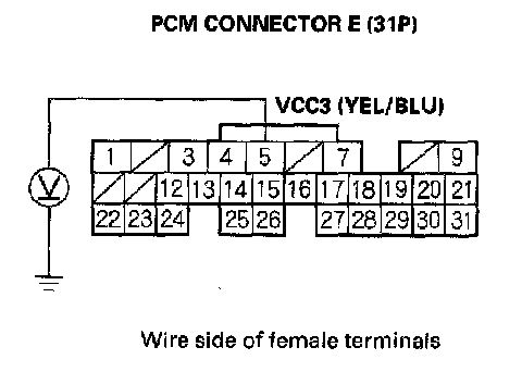 79. Measure voltage between PCM connector terminal E29 and body ground.