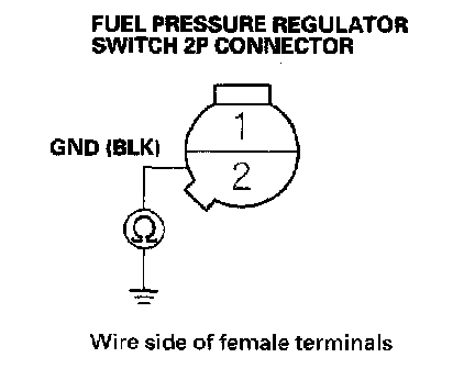 9. Check for continuity between fuel pressure regulator switch 2P connector terminal No.2 and body ground.