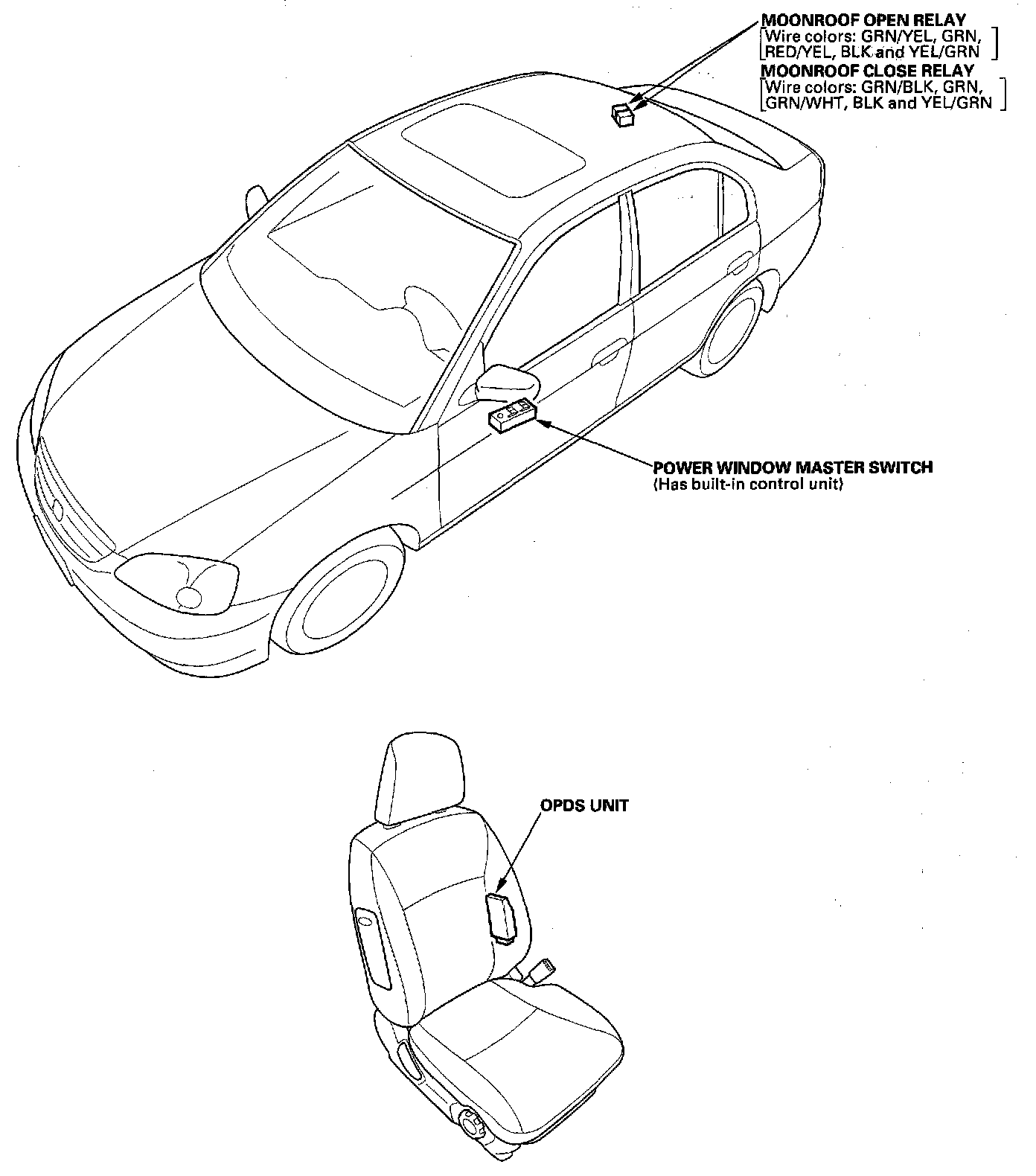Relay And Control Unit Locations - Door, Roof And Seat: