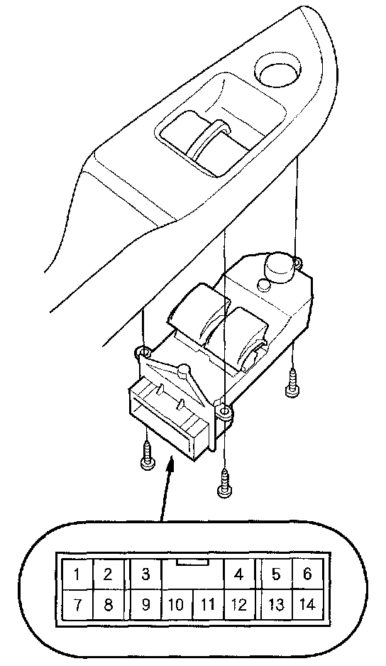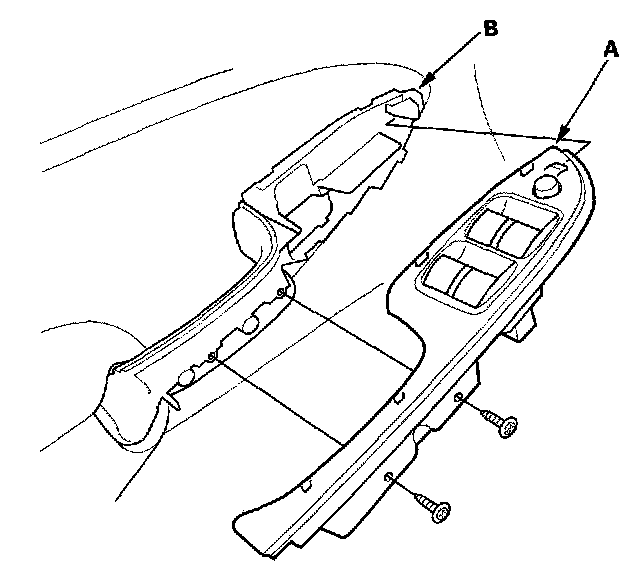 1. Remove the screws and the power window master switch (A) from the door panel.