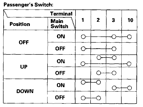The driver's switch is combined with the control unit so you cannot isolate the switch to test it. Instead, run the master switch input test procedures. If the tests are normal, the driver's switch must be faulty. Replace the switch.