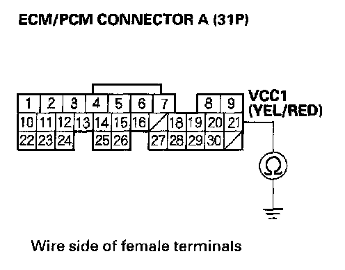 12. Connect ECM/PCM connector terminal E31 to body ground with a jumper wire.