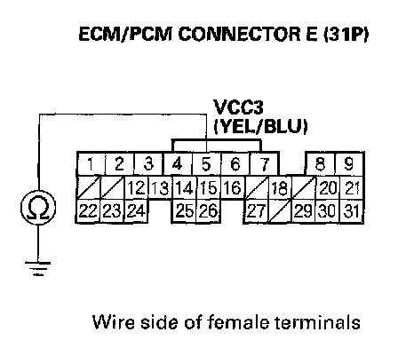 25. Check for continuity between ECM/PCM connector terminal E9 and body ground.
