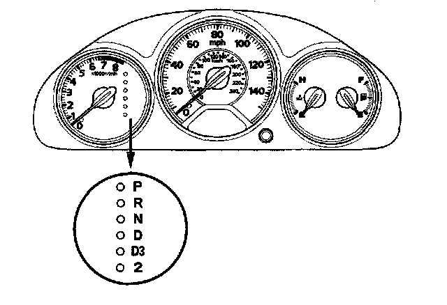 11. Turn the ignition switch ON (II). Move the shift lever through all gear positions, and cheek the transmission range switch synchronization with the A/T gear position indicator.