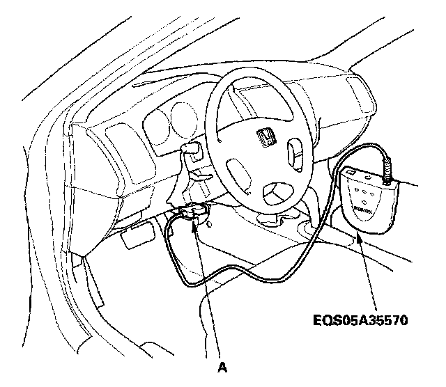 3. Connect the HDS to the vehicles data link connector (DLC) (A).