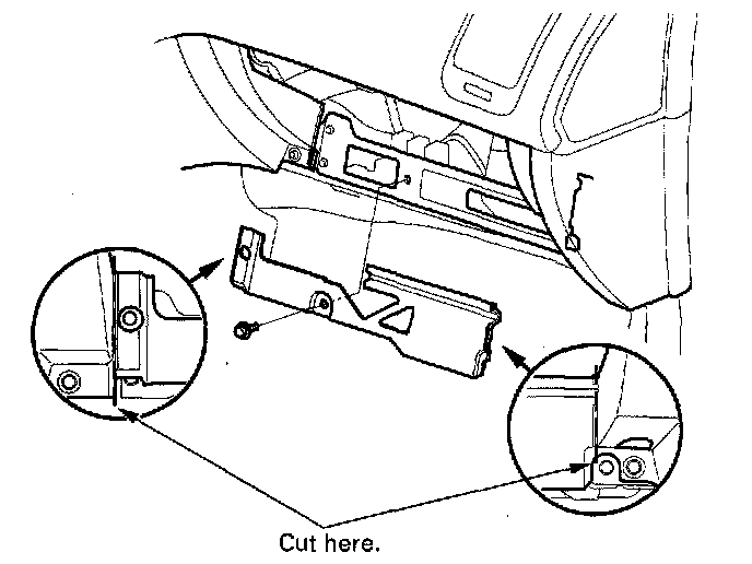 4. Remove the bolt. Cut the plastic cross brace in the glove box opening with diagonal cutters in the area shown, and discard it.