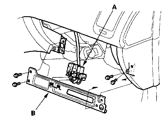 5. Remove the relays (A), then remove the bolts and the glove box frame (B).