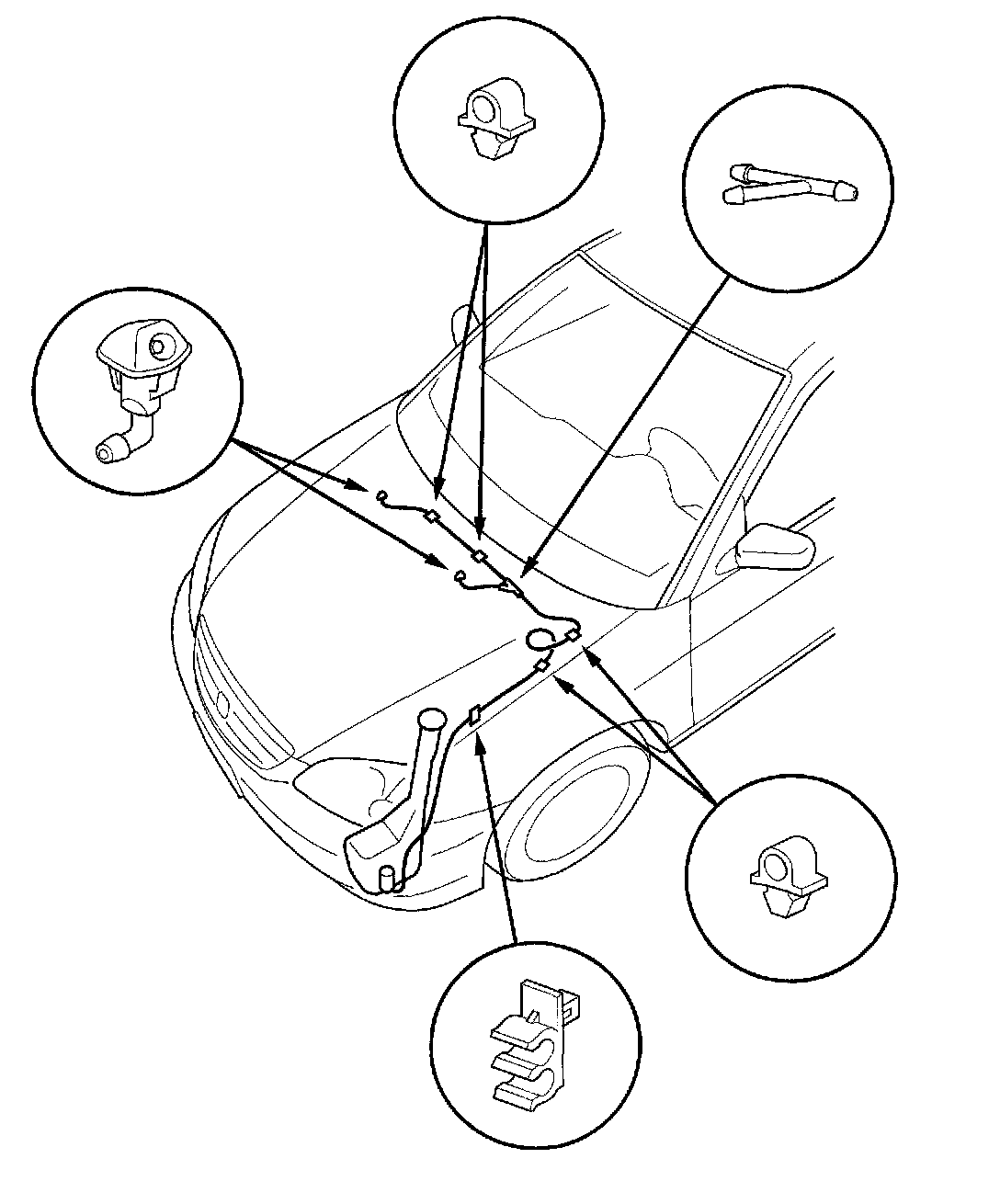 2. Remove the windshield washer nozzles and clips, then remove the tube.
