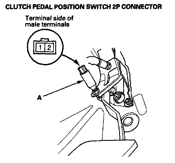 1. Disconnect the 2P connector from the clutch pedal position switch (A).