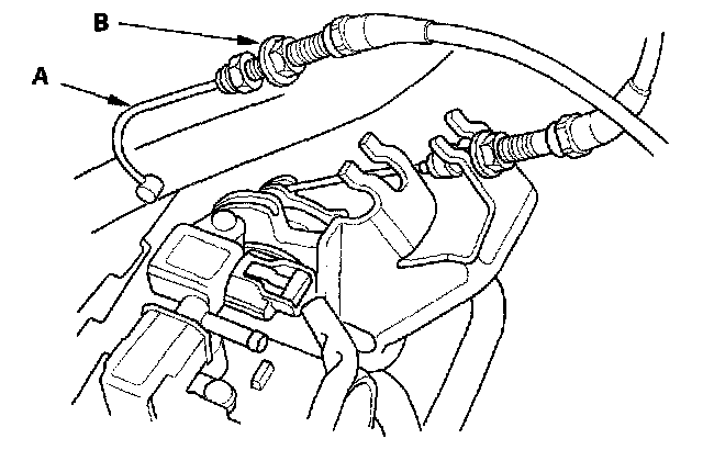 Cruise Control Actuator/Cable Replacement1. Fully open the cruise control link by hand, then remove the cruise control cable (A) from the link. Loosen the locknut (B), and remove the cable from the bracket.