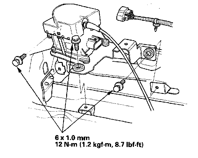 2. Disconnect the 4P connector, and remove the three bolts securing the cruise control actuator.