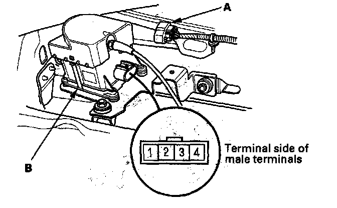 1. Disconnect the 4P connector (A) from the cruise control actuator (B).