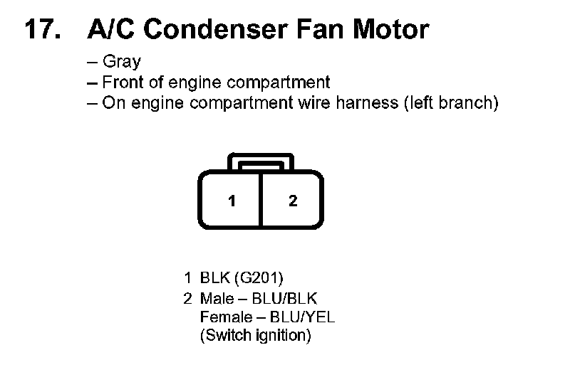 17. A/C Condenser Fan Motor: