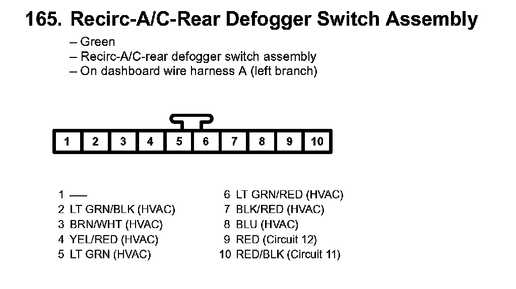 165. Recirc-A/C-Rear Defogger Switch Assembly: