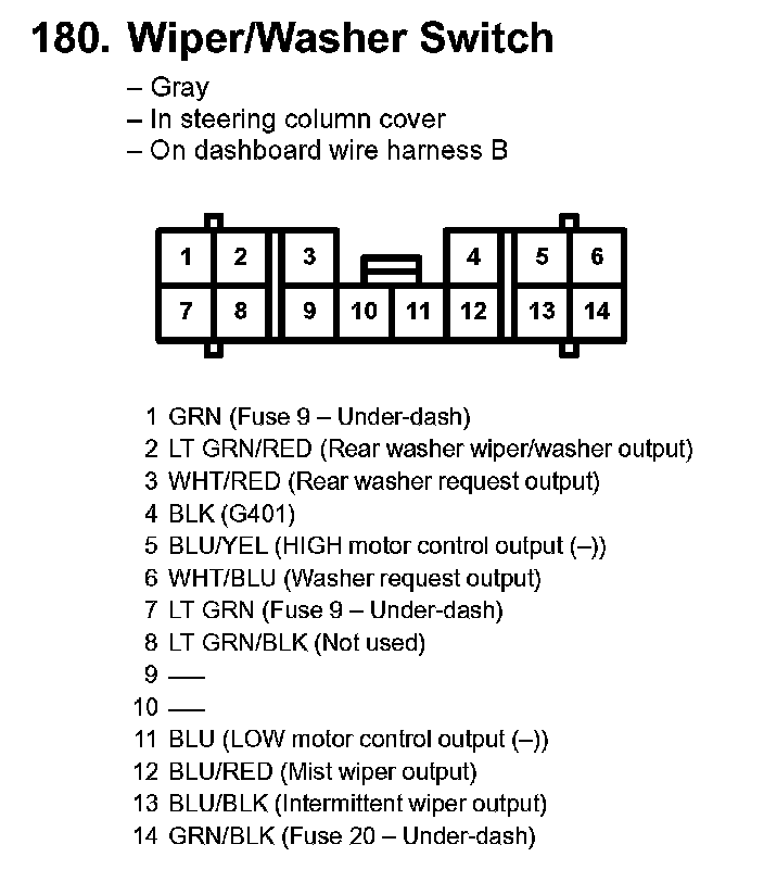 180. Wiper/Washer Switch: