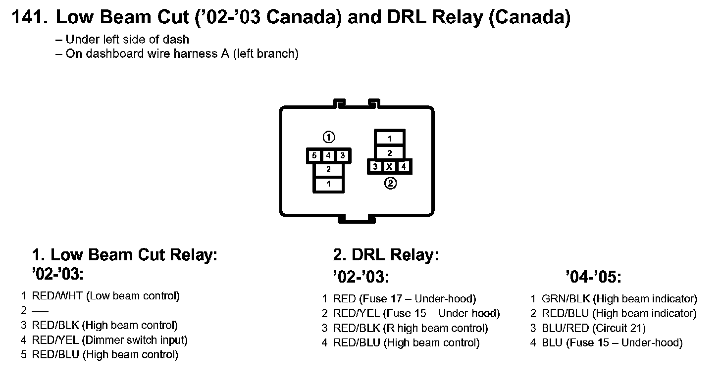 141. Low Beam Cut ('02-'03 Canada) And DRL Relay (Canada):
